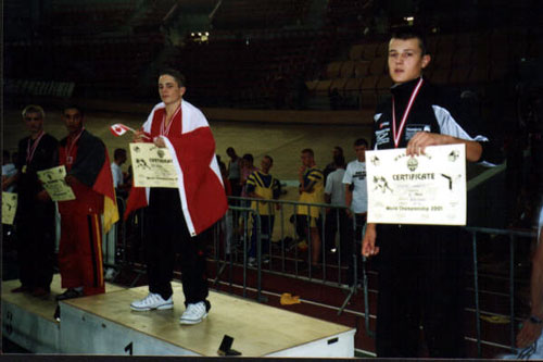 WKA Weltmeisterschaft August 2001 in Wien im Ferry-Dusika-Stadion - Unser Kämpfer Johannes Straub wurde Vizeweltmeister der Jugend im LK, Weitere Starter Willi Straub Jugend Lk, Jens Peter Herren LK, Frank Leuthner Herren VK